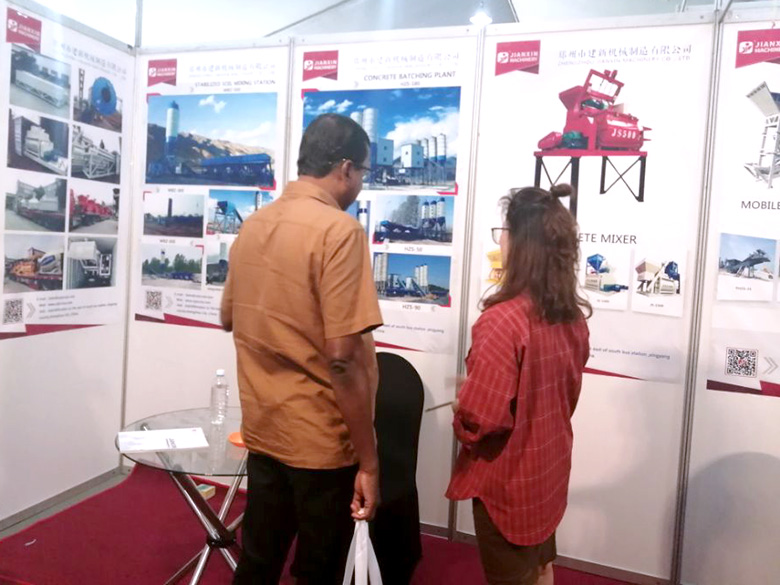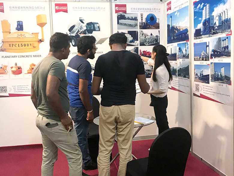 混凝土攪拌站、WBC系列穩定土拌合站等產品吸引了絡繹不絕的觀展者駐足洽談。接待人員不失時機地向來觀展的客戶介紹建新機械的技術優勢、產品特點、售后服務及銷售代理政策,其熱情的講解受到了廣大斯里蘭卡客戶和當地工程機械人士的關注,部分客戶當場展開了詳細的商談。